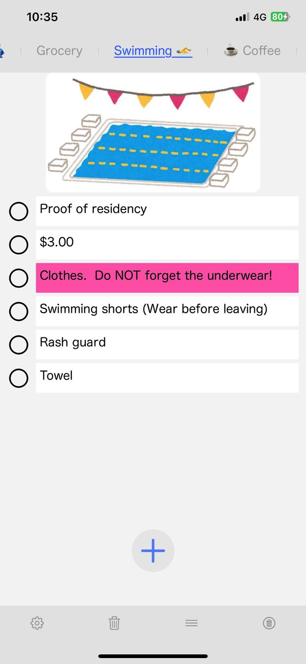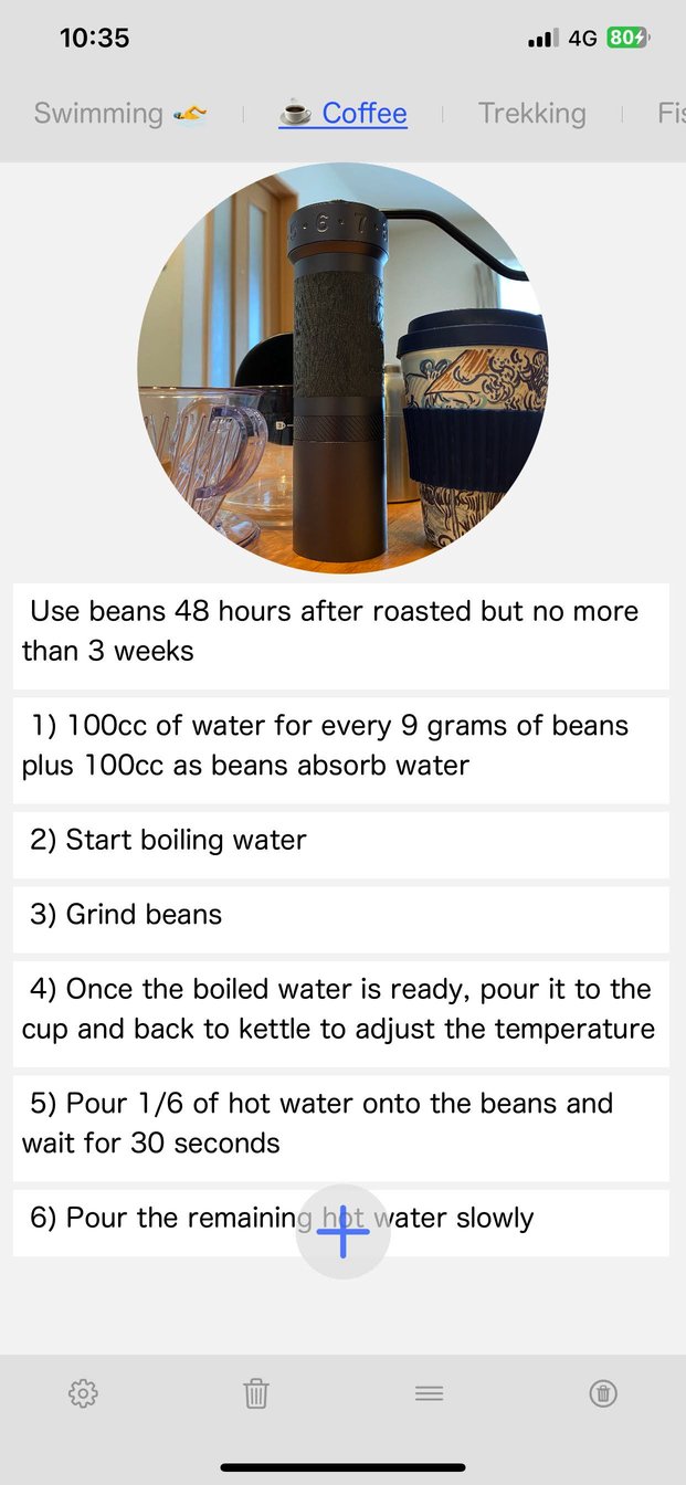 6) By adding a space at the beginning of a ToDo item, you can turn off the check display, allowing it to be used as a notepad