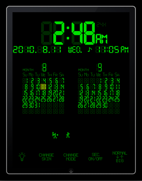 システムの自動ロックの設定に戻ってしまった場合、システムの自動ロックの設定が「しない」に設定されていないかぎり、指定してある時間に自動ロックがかかり、スリープモードに入ってしまい、iPad の画面から Toki Clock が消えてしまいます。この状態に陥った場合、お手数ですが、Toki Clock を再起動してください。再起動することによって、再び自動ロックがかからないようになり、Toki Clock の表示が消えることはありません。(同様の理由で、Toki Clockのアラーム設定画面内で一度でも曲を視聴すると指定してある時間にスリープモードに入ってしまうのでご注意ください)