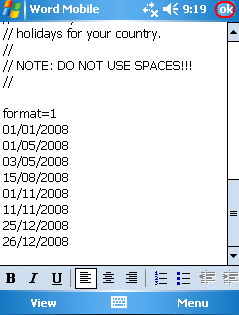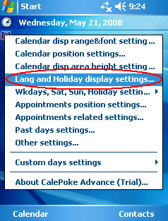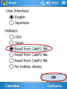 For Holidays, select 'Read from Calep1 file' and tap on the