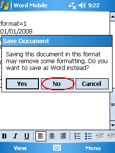 format. You MUST tap on the [No] button. If you tap on the [Yes]