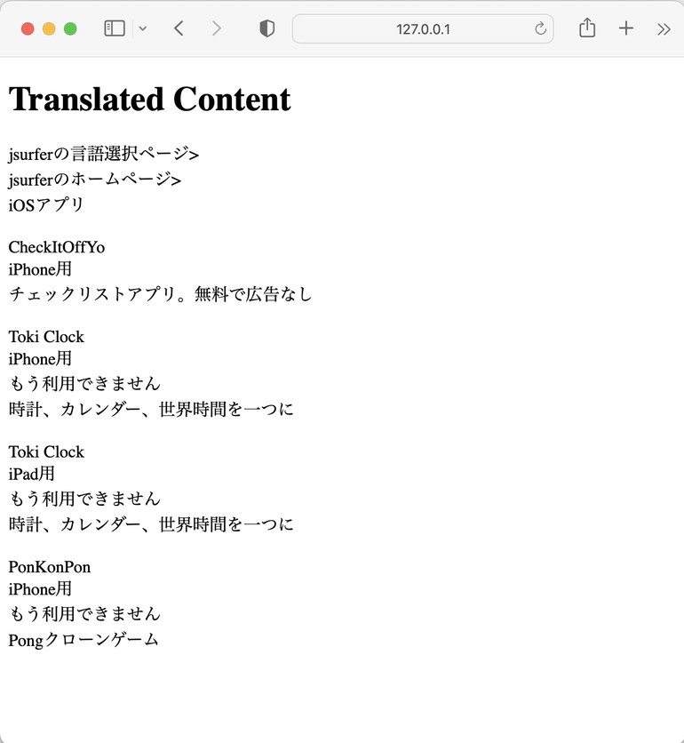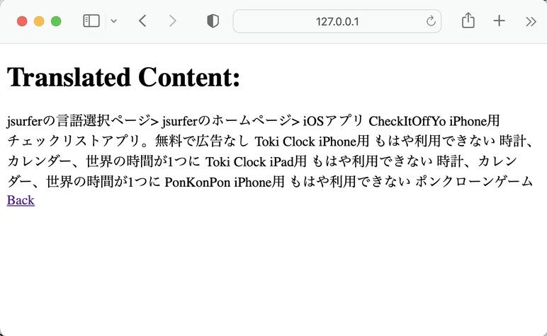 この Web アプリを使うと、例えばこの私の英語のページをリアルタイムで ChatGPT に日本語に訳してもらうことも可能です。